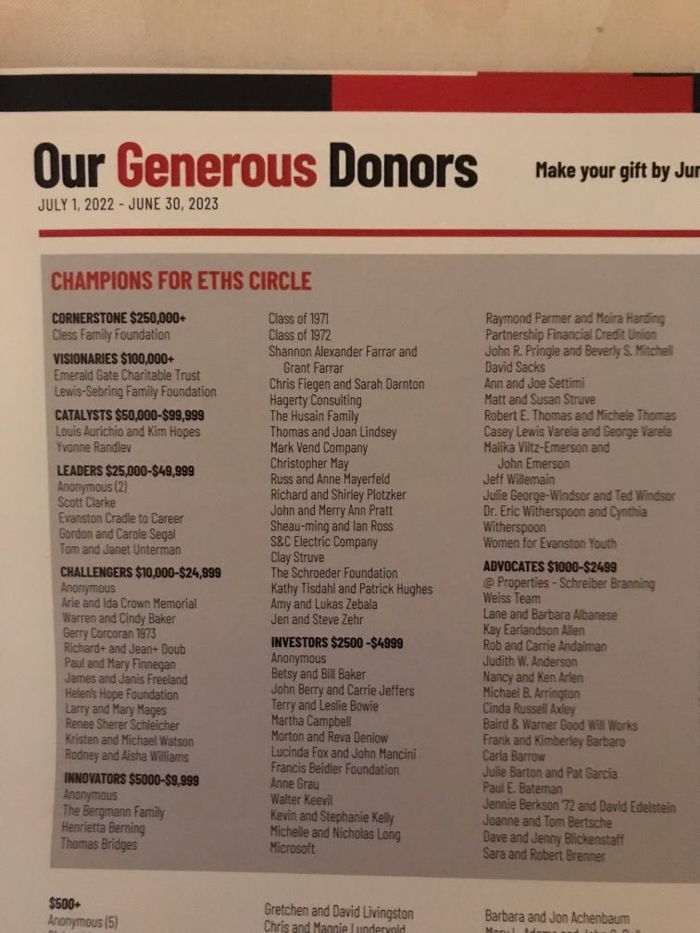 Nancy Arlen let us know that our Class Gift was recognized in the ETHS Foundation's Annual Impact Report! Thank you for your donations!
